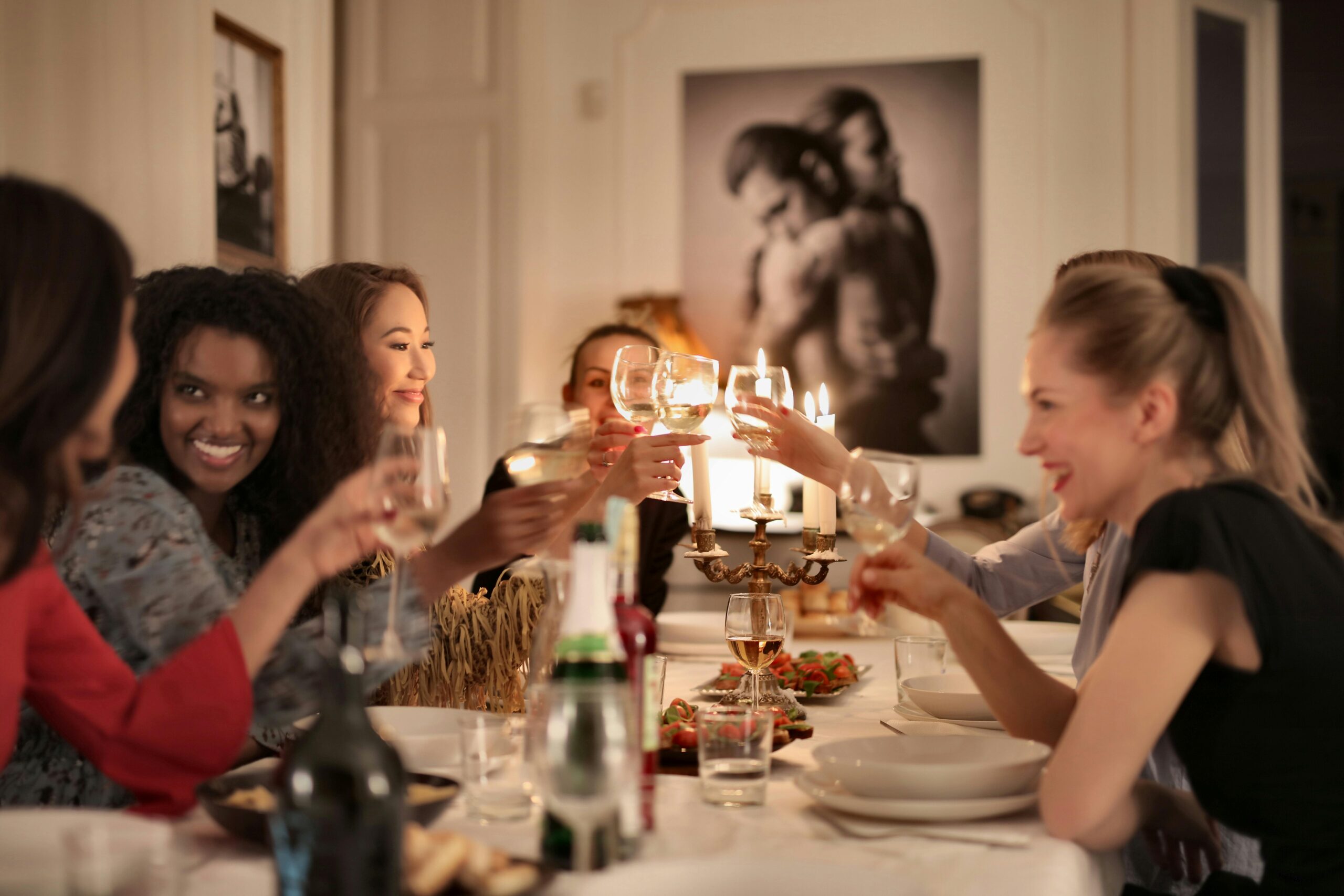4명의 단란한 테이블이 평범한 점심을 특별한 여행으로 바꿉니다.